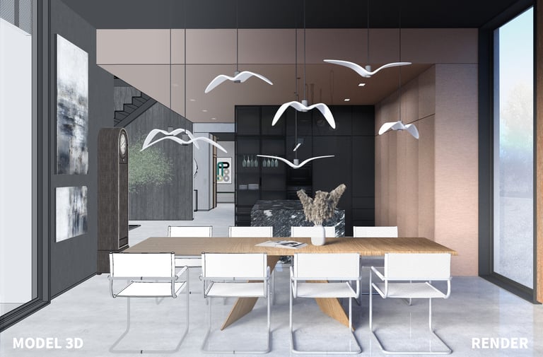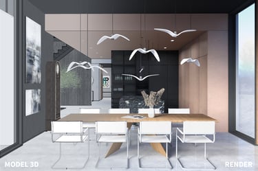 praca na podstawie widoków, czyli ujęć z modelu 3D przedstawiających aranżację wnętrz,Wizualizacje fotorealistyczne
