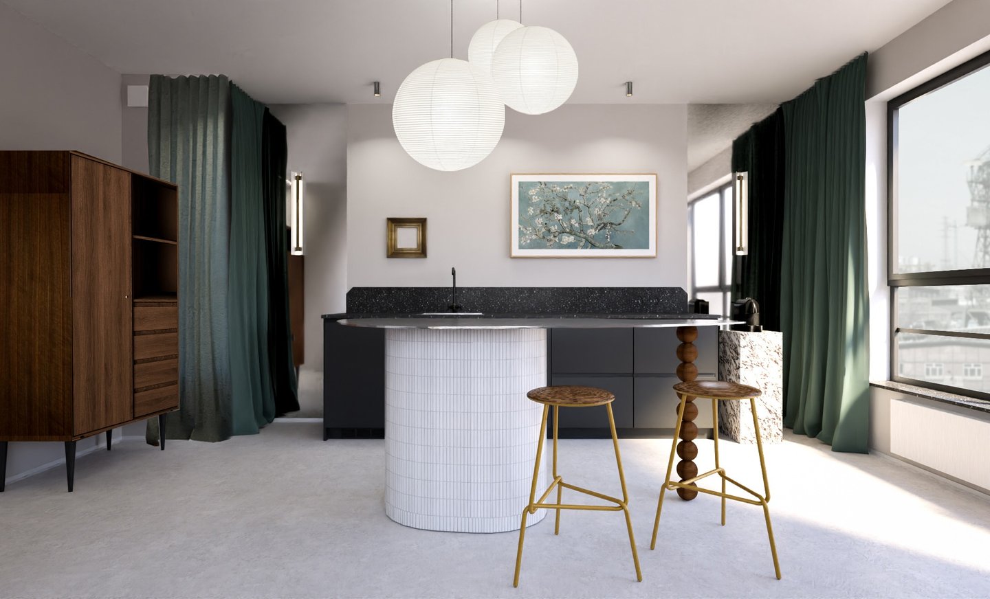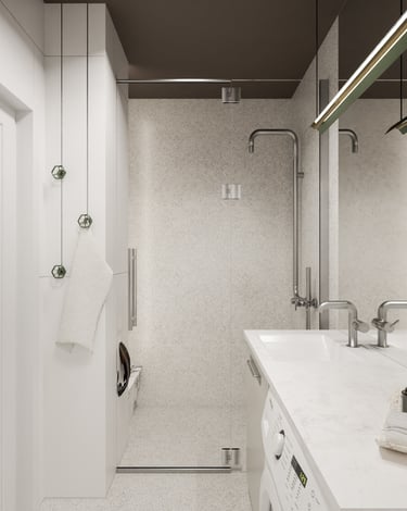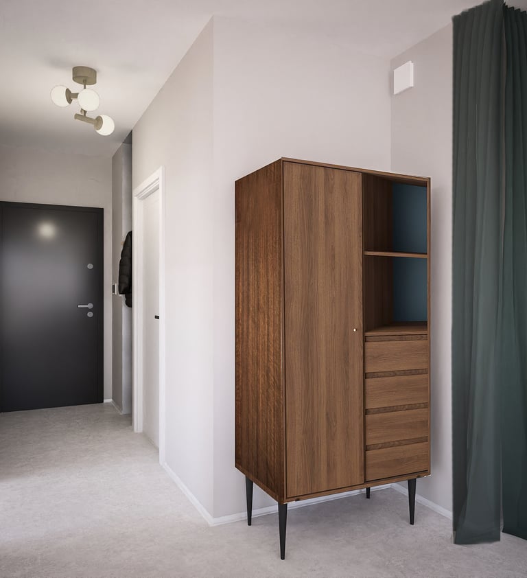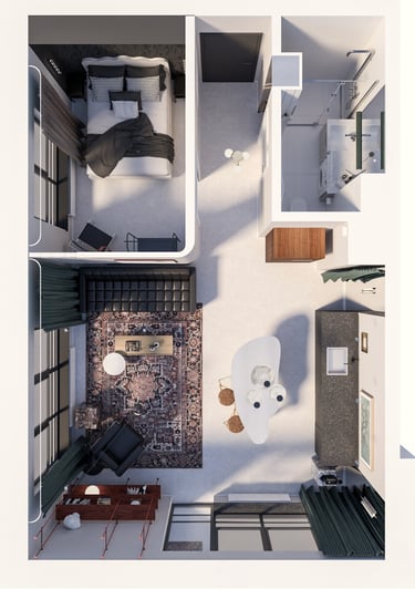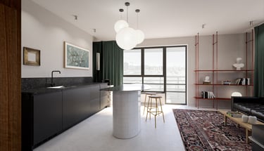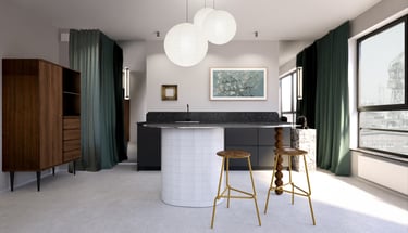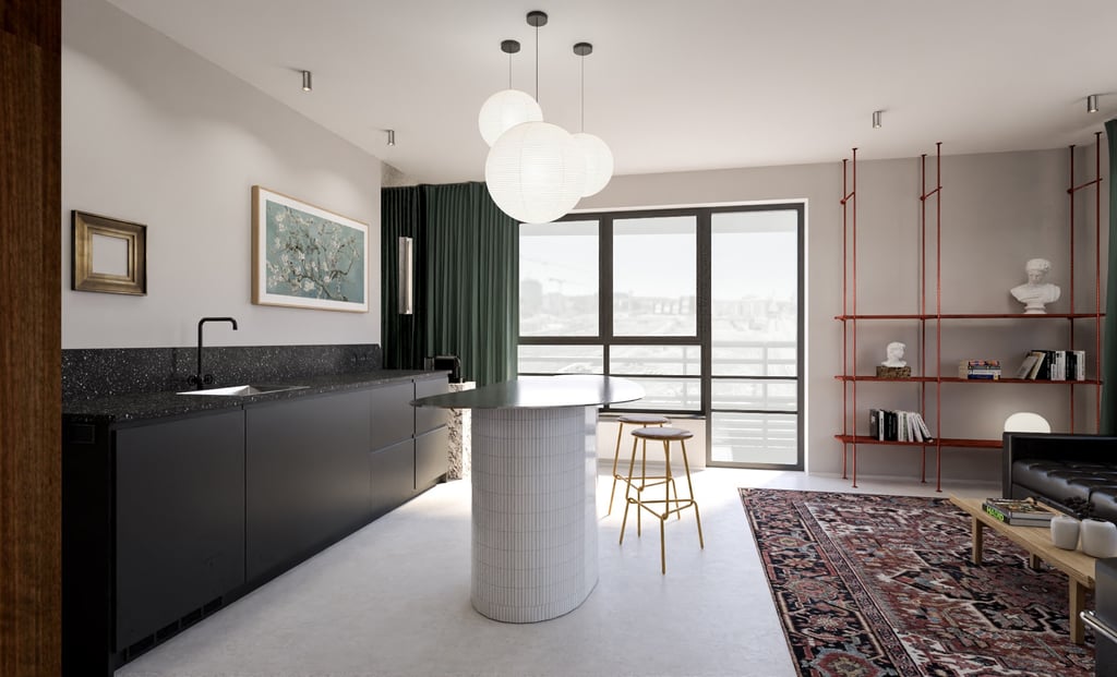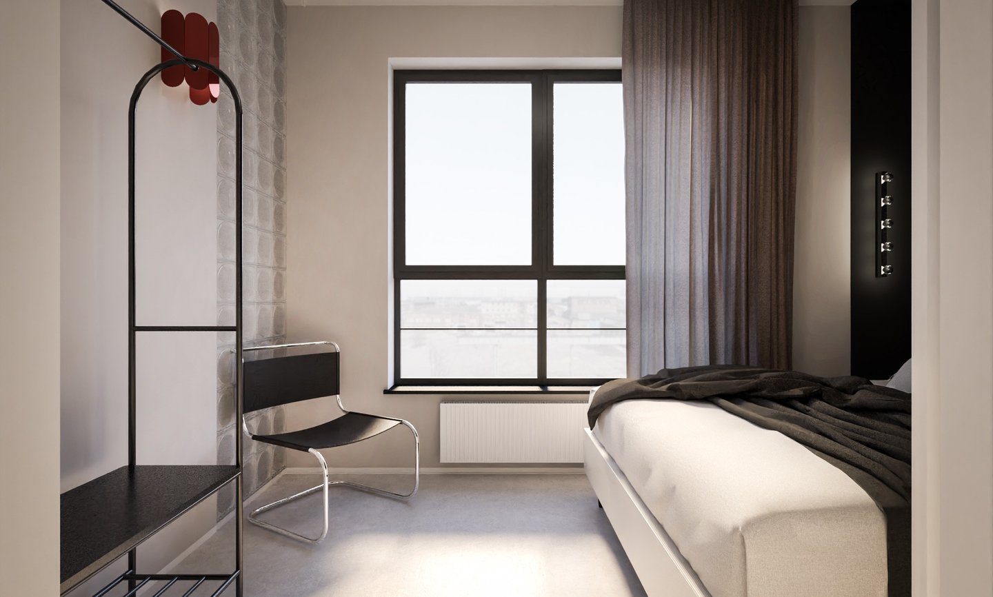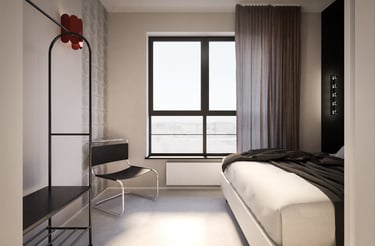 Wnętrze mieszkania na wynajem krótkoterminowy zawsze powinno mieć w sobie o coś! Chwytające oko, zapadające w pamieć. Ta realizacja z pewnością spełni powyższe wymagania. Surowa, nawiązująca do obecnych trendów, korespondująca z industrialnym tłem Stoczni Cesarskiej - lokal idealny na weekendowy wypad do Gdańska.